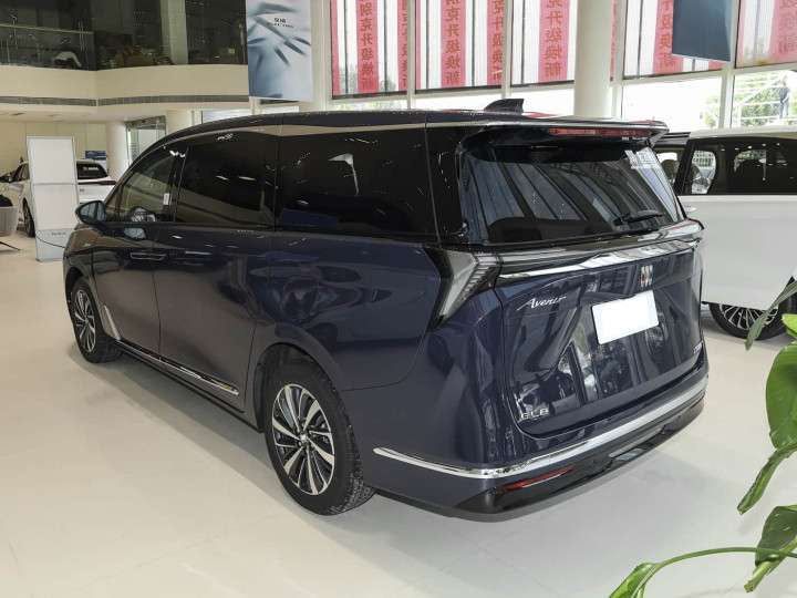 再来看车尾部分,车尾设计延续车头的豪华基调,短小上翘的扰流板不仅优化空气动力学,更增添运动气息。贯穿式 LED 尾灯组采用熏黑处理,内部光源排列成矩阵样式,夜晚点亮后辨识度极高,与车头大灯形成完美呼应。尾灯下方的镀铬饰条横向贯穿车尾,拉伸视觉宽度,进一步强化稳重感。后保险杠采用双色设计,黑色下包围搭配镀铬饰条,既提升耐脏性,又彰显高级感。隐藏式排气布局让车尾更显简约,符合商务车型的内敛定位。值得一提的是,尾门支持电动开启与脚踢感应功能,在双手持物时,只需用脚轻扫车尾下方,即可自动开启,实用性拉满。